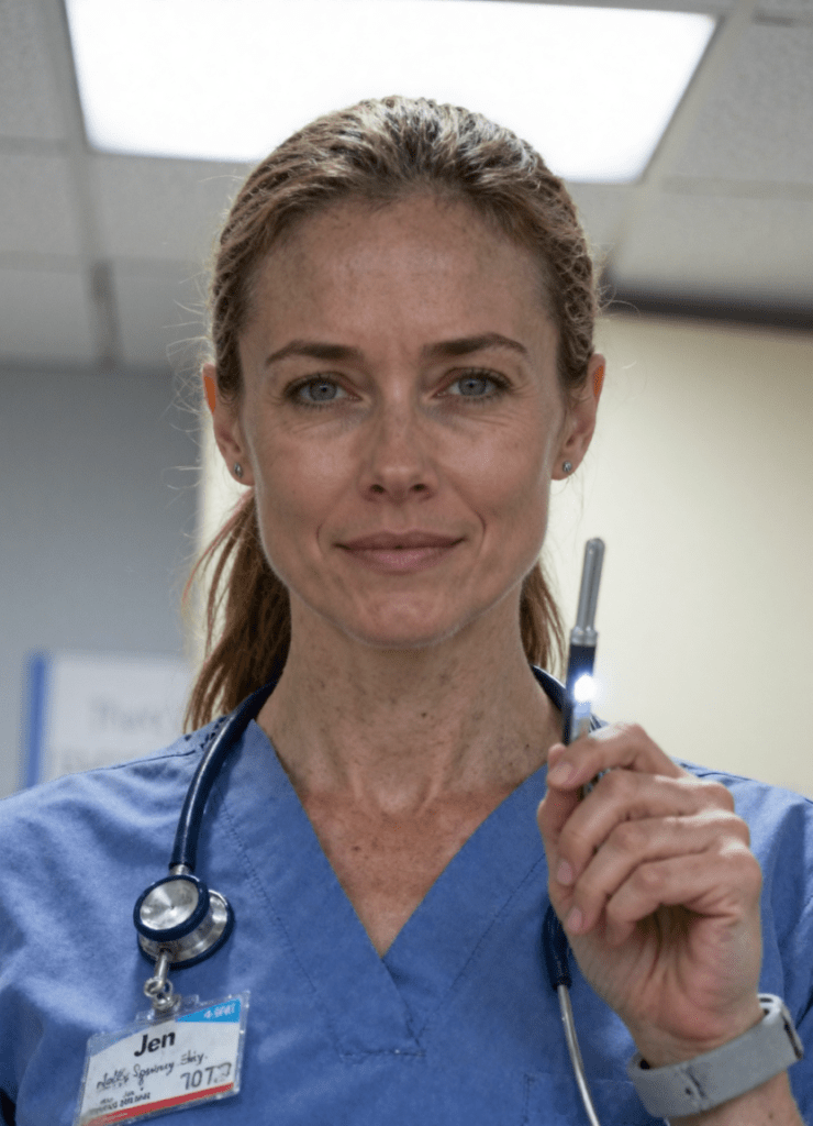 Jen Gordon is a travel nurse caught at the wrong place at the worst possible time as the country begins to fracture. Intelligent, compassionate, and stubbornly independent, she is driven by a deep sense of duty to help others even as the world around her turns increasingly violent. Separated from Bret early in the collapse, Jen is forced to survive on her own, navigating chaos, betrayal, and moral compromise while trying to hold onto her humanity. Her choices — often guided by empathy rather than caution — shape not only her fate, but the course of the war unfolding around her.