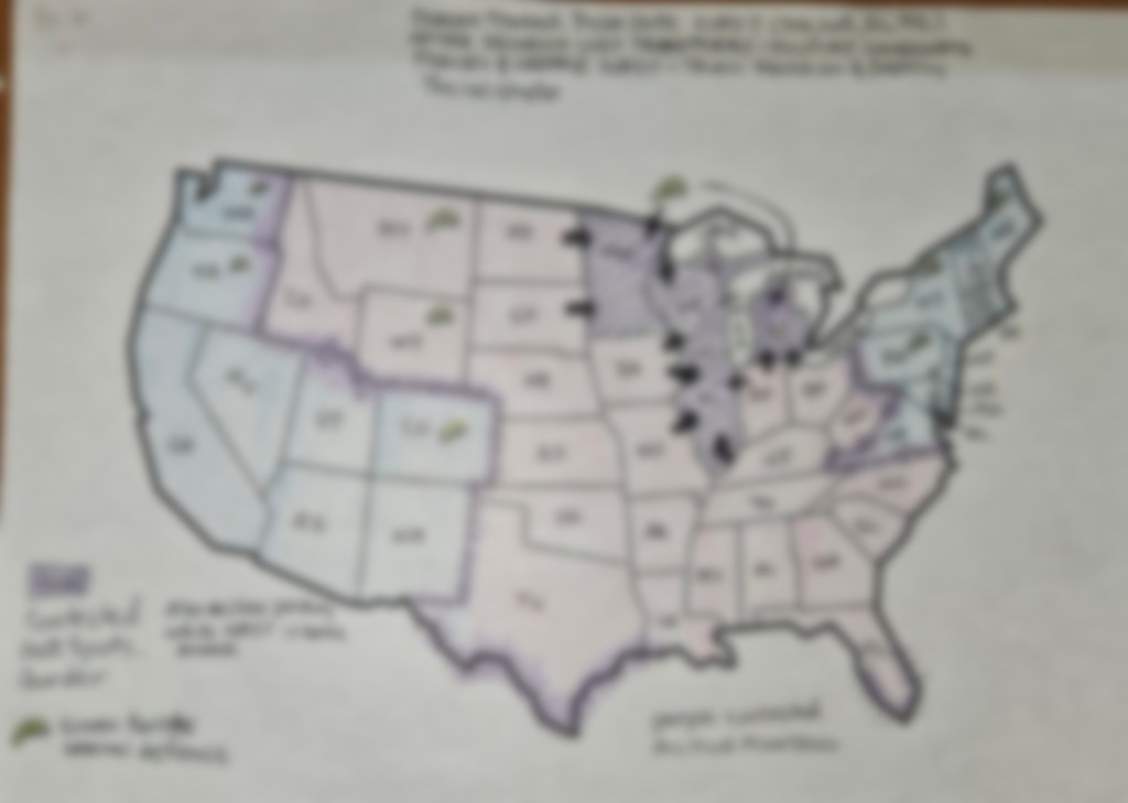 The Red states are those states that have stayed true to the Constitutional Republic idea. They have four groups of states that also include Militia groups that have been organized and lead by a mysterious person going by the call sign Leonidas. There’s a fifth militia that is mobile and can moved anywhere available in a moments notice.